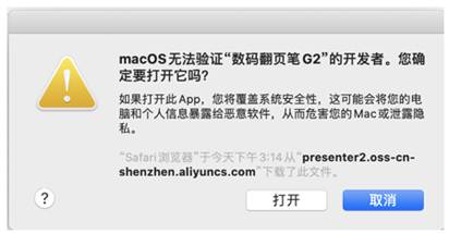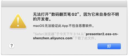 如果出现“身份不明”提示窗口 如果dmg程序包是safari浏览器下载的话,首次运行会出现下面的提示窗口。这是正常现象。