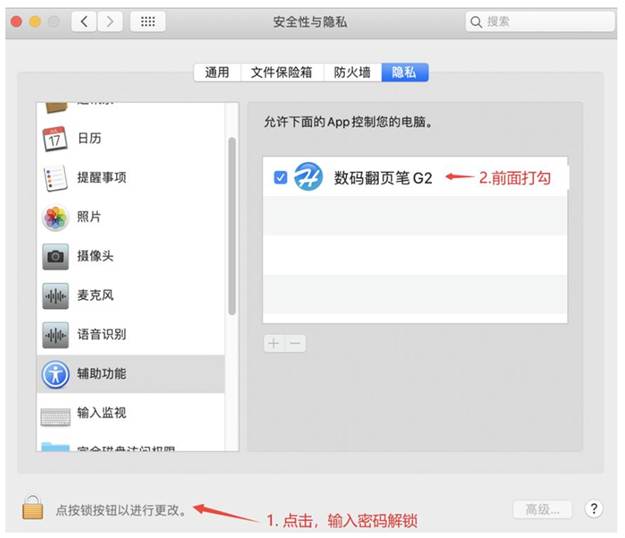 点击“好”就出现以下的权限设置对话框。(或者在“设置”中选择“安全性与隐私”)