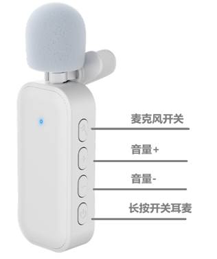 3. 连接无线耳麦:如果是无线版本则需要打开无线耳麦的开关,等蓝灯停止闪烁,扩音器提示“麦克风模式”就可以了。无线耳麦支持一个扩音器同时连接2个无线麦克风的模式。领夹版则提供领夹式麦克风。使用方式一样。